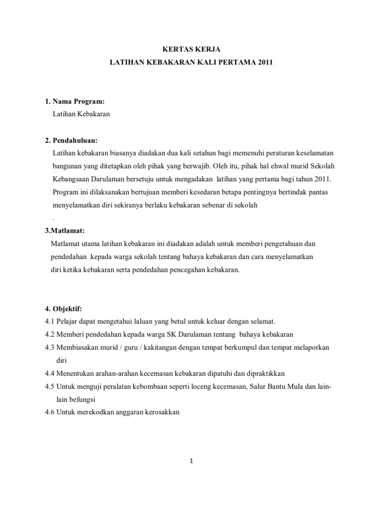 Kertas Kerja Latihan Kebakaran 2011 Pdf